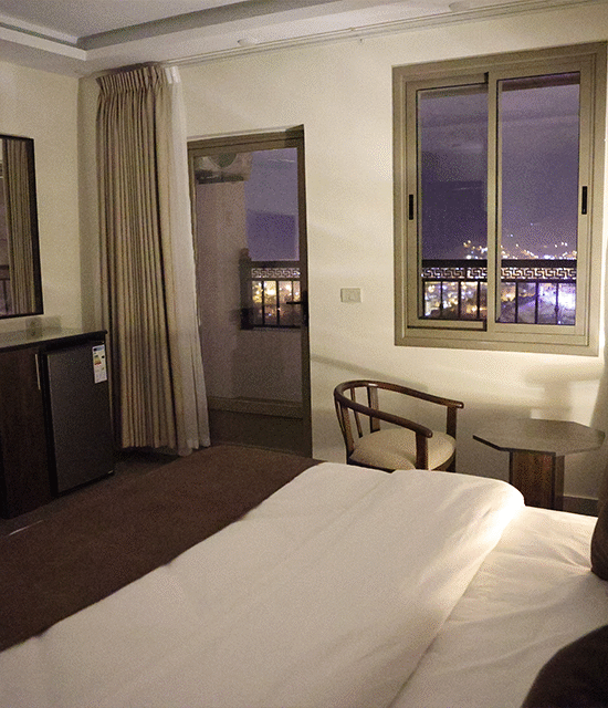 Enjoy comfort and style in our 20 m² King Room, featuring a cozy full bed and a private balcony with stunning mountain views. Unwind in the private bathroom with a bathtub and free toiletries. Additional amenities include a flat-screen TV, air conditioning, tea/coffee maker, electric kettle, desk, and wake-up service. Thoughtful touches like slippers, linens, and a safe ensure a pleasant and relaxing experience.